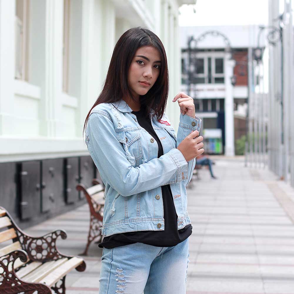 Jaket Jeans Kasual Wanita Premium Biru Denim Inficlo STT 174 adalah produk fashion handmade terbaik 100 persen asli produk Indonesia, asal Bandung kota paris van java.